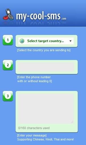 Today, I got to know about a great service which lets you to Send Free SMS over 10 countries<. You don’t need to sign up. Your SMS will arrive guaranteed and there are no annoying ads also. The message can have upto 160 characters.
